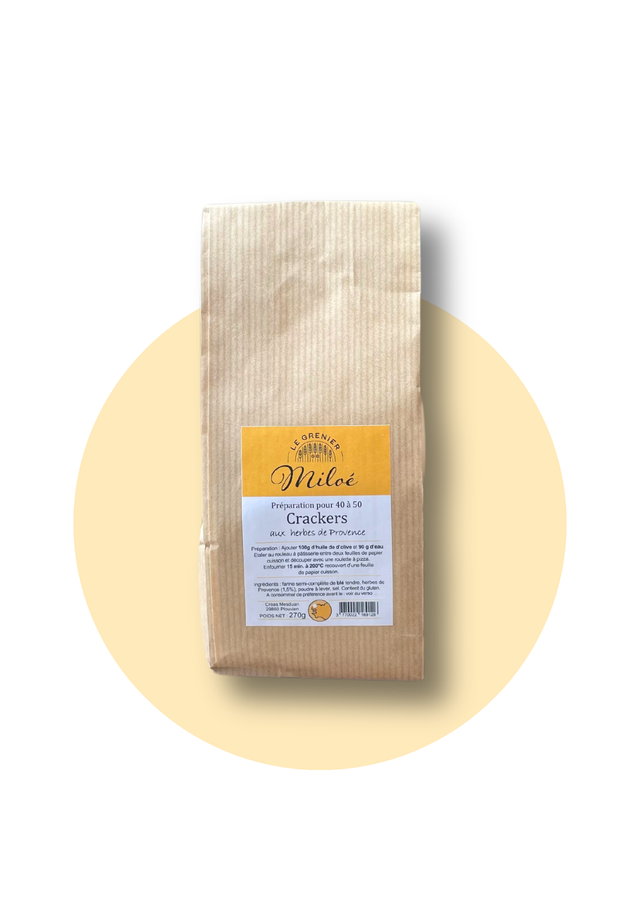 Ajoutez simplement un peu d’huile végétale (tournesol ou olive), de l’eau et le tour est joué grâce à ce mélange de farine de 270g prêt à l’emploi pour réaliser des crackers maison !